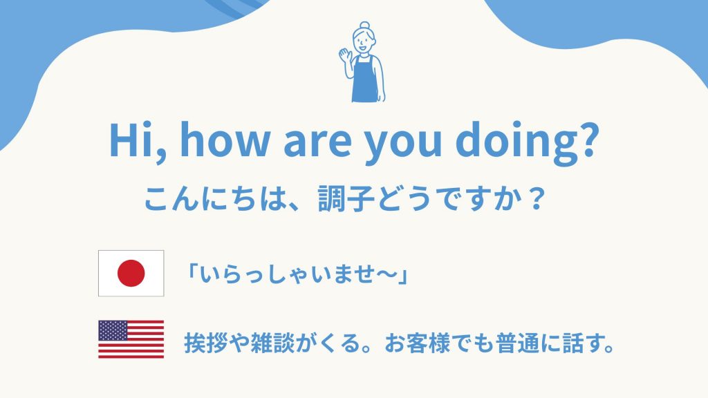 アメリカでは最初に “How are you doing?” や “How’s it going?” といったあいさつや、ちょっとした雑談から会話が始まります。