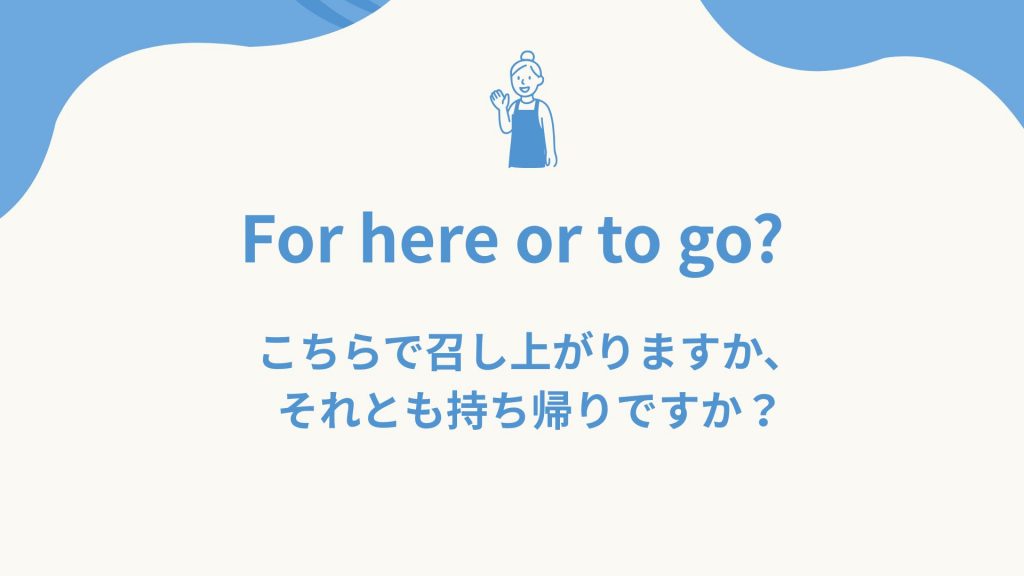 また、アメリカのカフェでは「持ち帰り」を “to go” と言うのが一般的。私は答えられずに、焦ってしまいました。