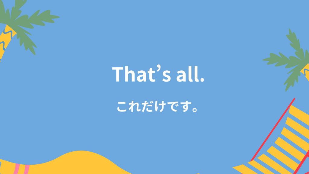 この “That’s all.” も、シンプルだけど役立つ言葉。この言葉を知らなかった私は「No….no..」と自信のない答え方になってしまいました。
